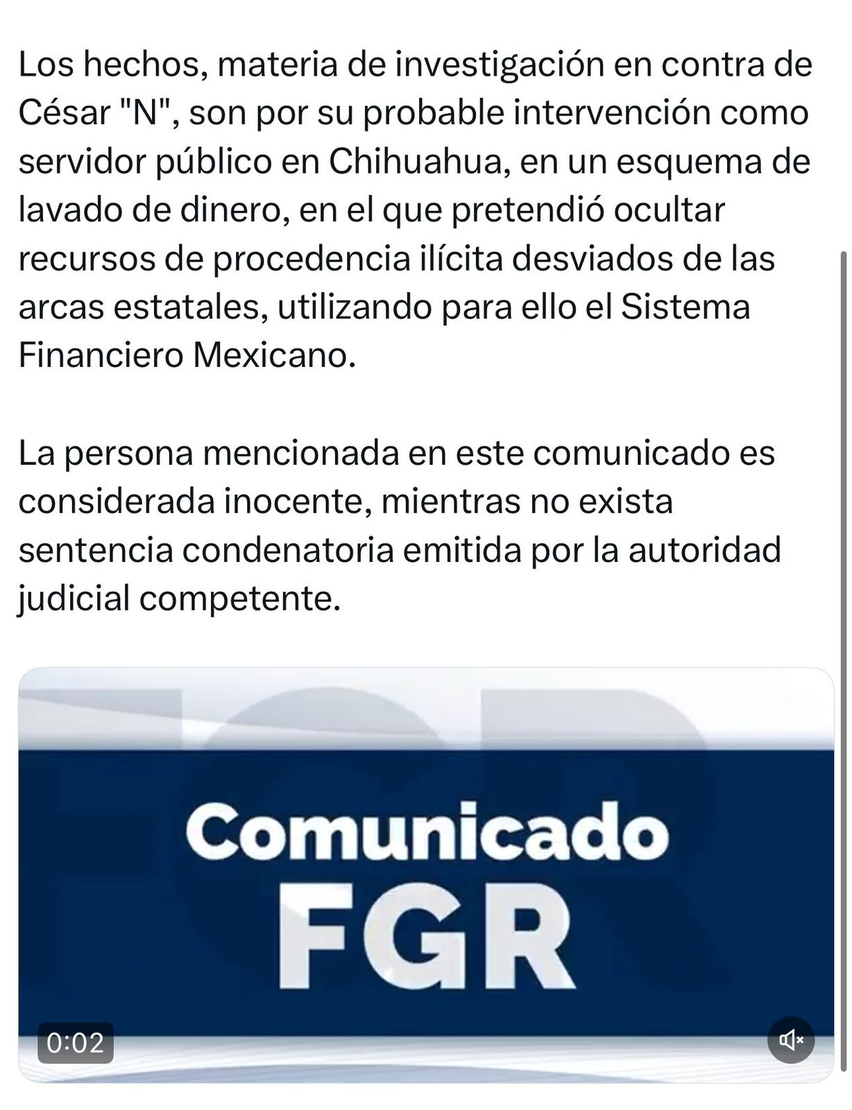 De acuerdo con la FGR, el exmandatario es investigado por un presunto esquema financiero en el que habría utilizado el Sistema Financiero Mexicano para ocultar recursos presuntamente desviados del erario público durante su gestión como servidor público estatal.