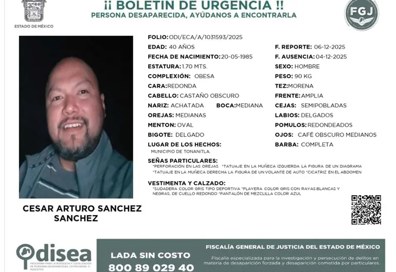 Buscan a César Arturo Sánchez Sánchez, Conductor de UBER Desaparecido en el Estado de México 9 diciembre, 2025 No hay comentarios Leer más