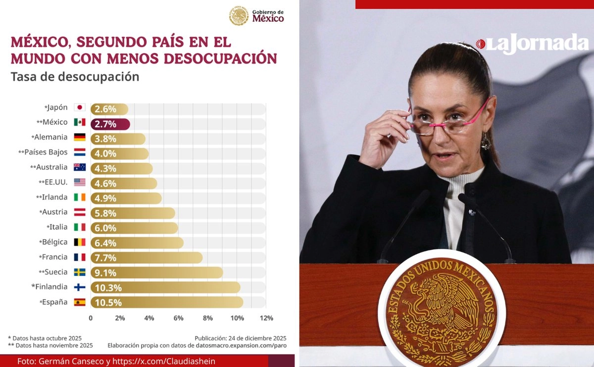 Destaca Sheinbaum segundo lugar en tasa más baja de desempleo 26 diciembre, 2025 No hay comentarios Leer más