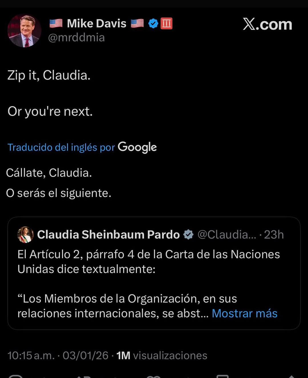 Tensión en redes: abogado cercano a Trump responde a Sheinbaum 4 enero, 2026 No hay comentarios Leer más
