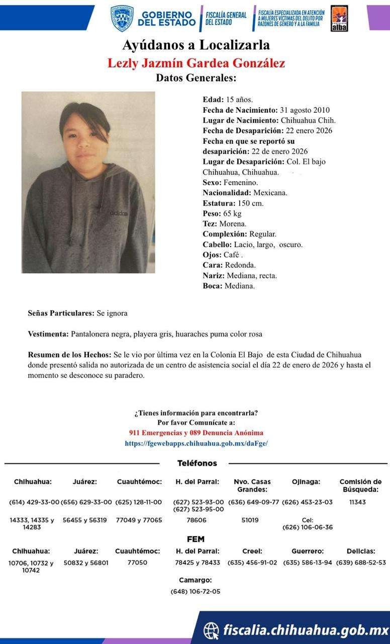Solicitan apoyo para localizar a adolescente desaparecida en la colonia El Bajo 22 enero, 2026 No hay comentarios Leer más
