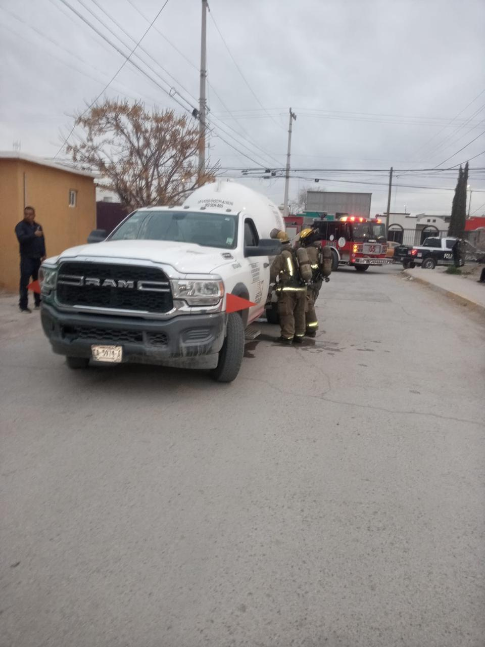 En otro hecho, personal operativo controló una fuga de gas LP en una pipa de Servigas. El vehículo estaba estacionado en Rivera de Meoqui y Rivera del Márquez, en Riberas del Bravo etapa 3. La unidad tenía cerca del 40% de gas, alrededor de 2 mil litros, cuando se detectó la fuga. El escape se originó en el empaque de una unión de brida. Los técnicos cerraron la llave de paso y eliminaron el riesgo.