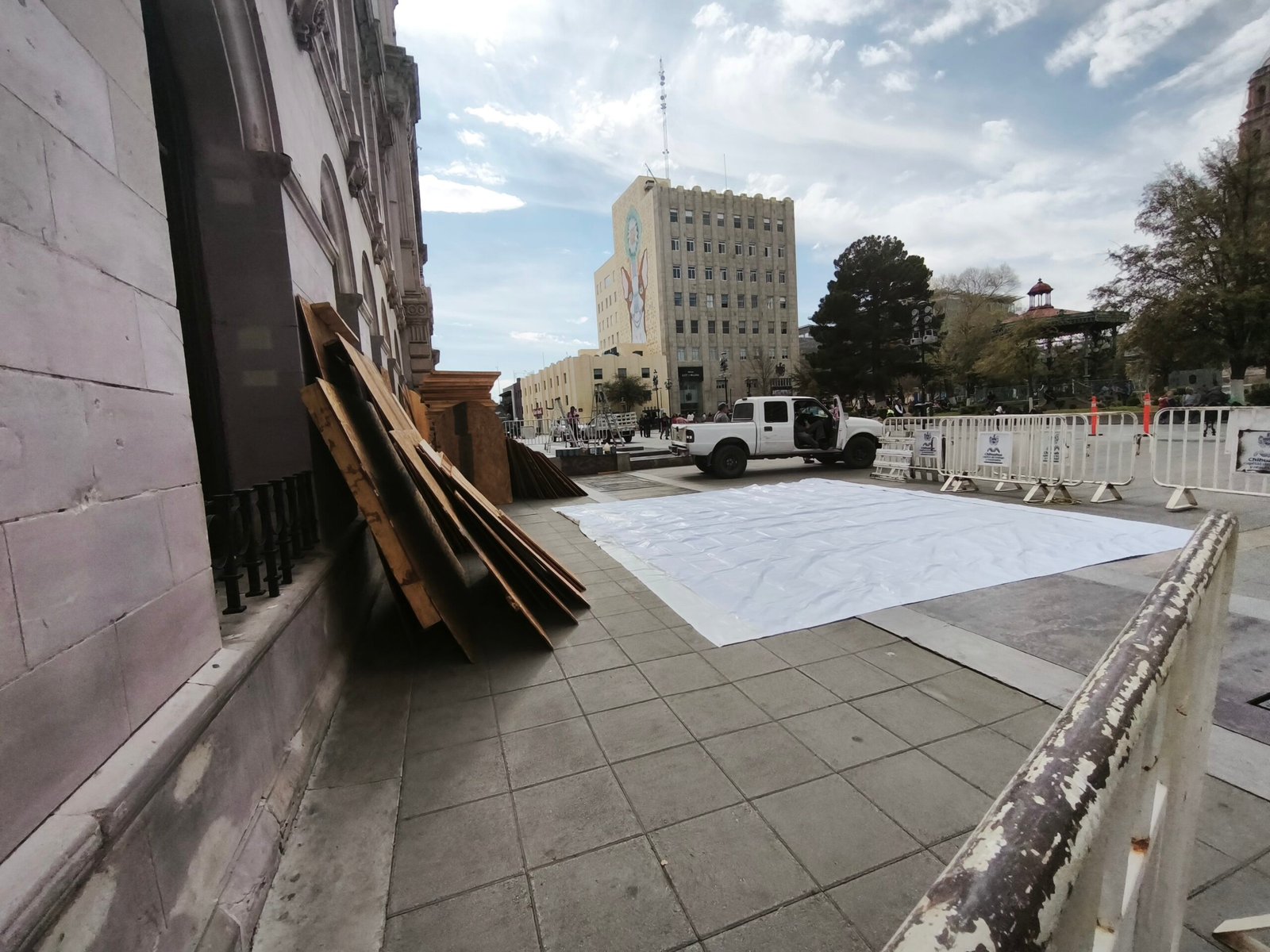 H. Cd de Chihuahua.- De cara a la manifestación programada para este 8 de marzo, en el marco del Día Internacional de la Mujer, autoridades comenzaron a retirar botes de basura y otros objetos del primer cuadro de la ciudad como parte de las medidas preventivas implementadas para resguardar espacios públicos y edificios históricos.