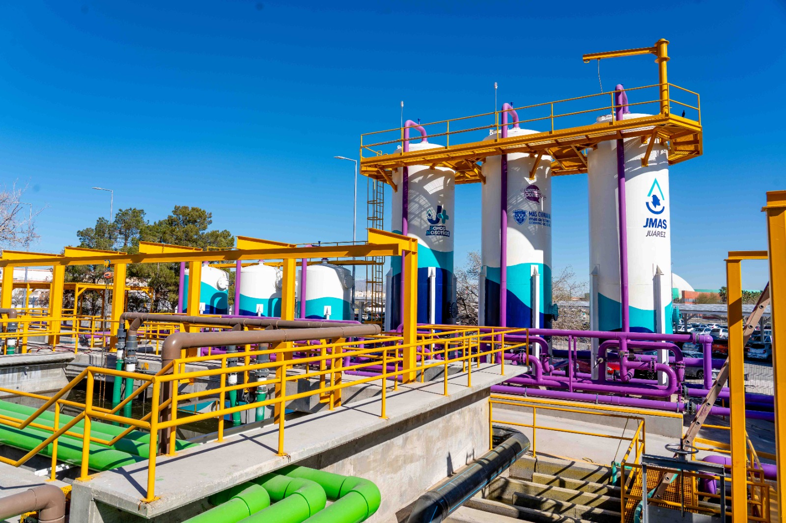 La planta opera con tratamiento biológico mediante microorganismos móviles, tecnología que mejora la eliminación de contaminantes. Además, sistemas automatizados monitorean de forma permanente parámetros como cloro y sodio para garantizar la calidad del agua tratada.
