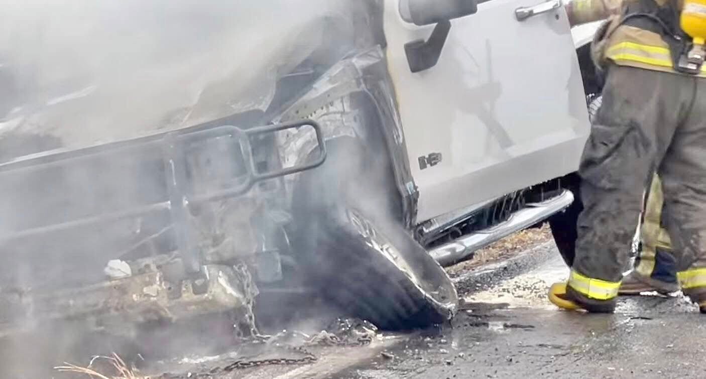 H. Cd. de Chihuahua.- Un vehículo tipo Hummer terminó consumido por las llamas este sábado en el kilómetro 46 de la carretera con dirección a la ciudad de Aldama, luego de que una falla mecánica provocara el incendio. De acuerdo con información extraoficial, el conductor señaló que “se le amarraron” las cuatro llantas, lo que generó el siniestro que consumió el vehículo, presuntamente de reciente modelo y procedente de Ojinaga, Chihuahua.