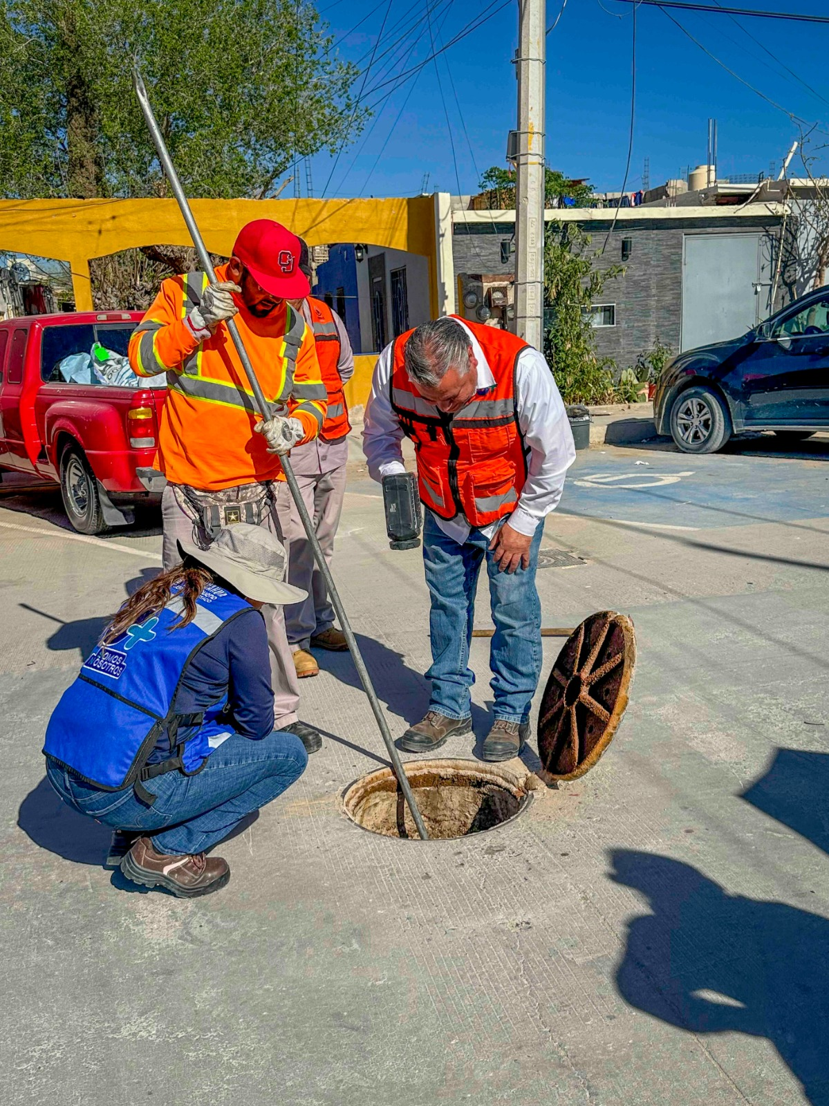 Ciudad Juárez.- La Junta Municipal de Agua y Saneamiento (JMAS) realizó un recorrido en la colonia Carlos Castillo Peraza junto con habitantes del sector, tras los constantes reportes por brotes de aguas negras en distintas calles.