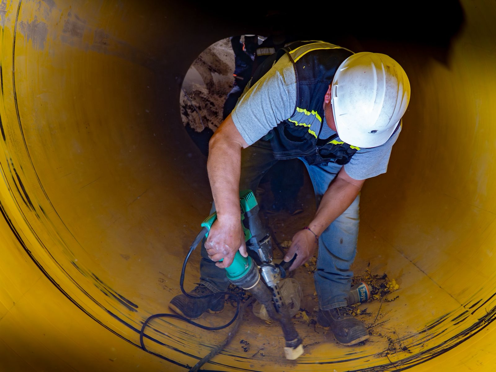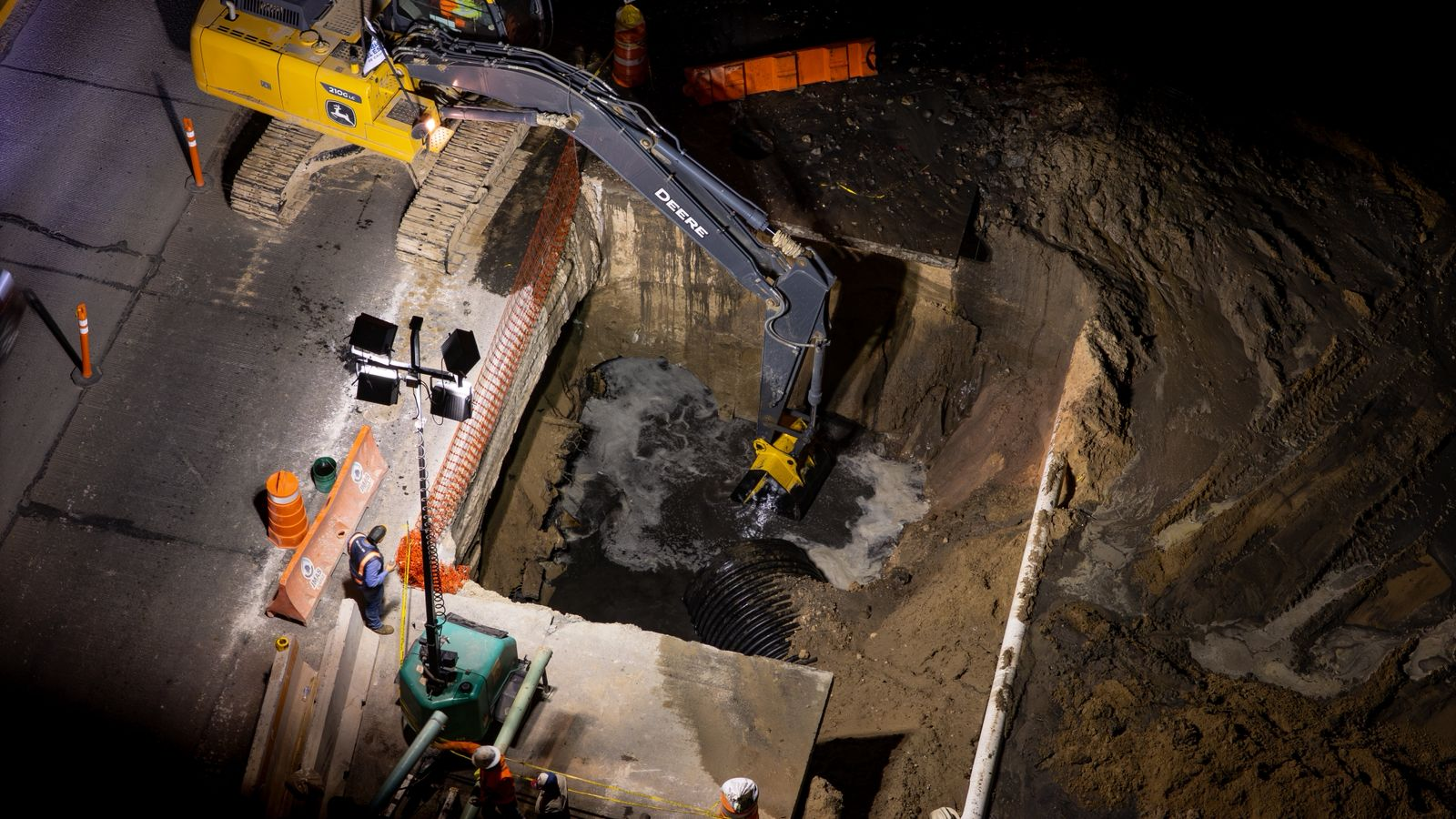 Las maniobras comenzaron la noche del domingo con el taponamiento temporal de la red para frenar el flujo de aguas residuales. Cuadrillas especializadas instalaron dispositivos inflables que permitieron trabajar en condiciones seguras antes de ejecutar la demolición del conducto anterior.