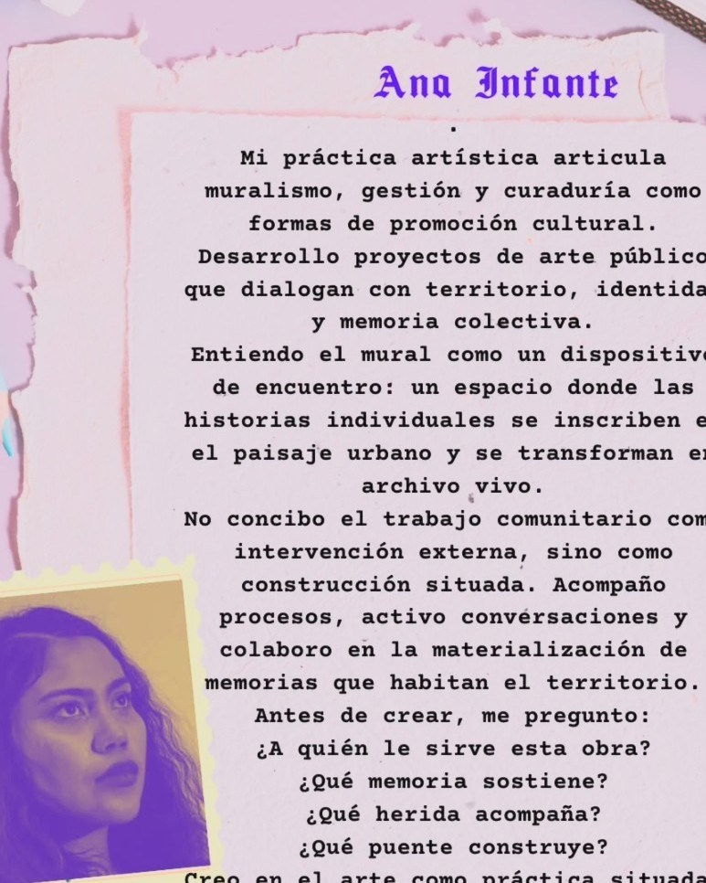 En el texto difundido, la artista describe el muralismo como una herramienta de memoria colectiva y gestión cultural. También plantea que estas obras no funcionan como intervenciones aisladas, sino como procesos construidos junto a las familias.