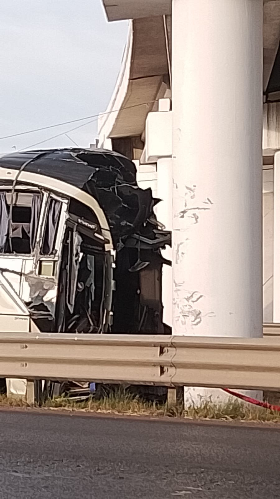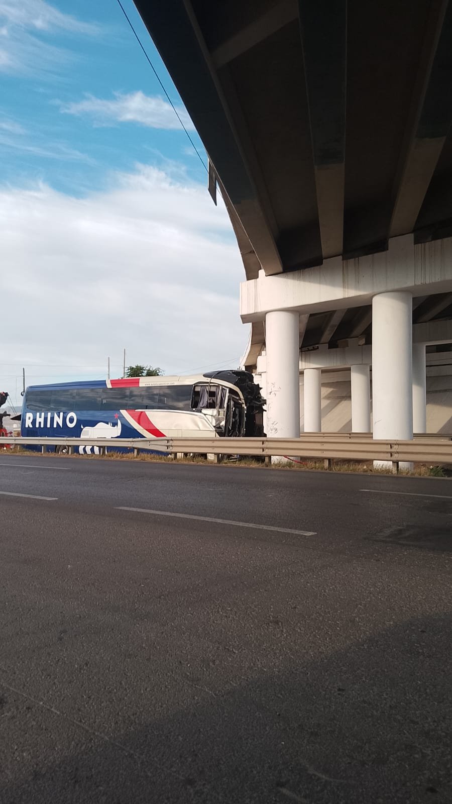 H. Cd de Chihuahua.- Luego de varias horas del fatal accidente registrado la madrugada de este jueves, fue hasta alrededor de las 7:00 de la mañana cuando autoridades comenzaron con las maniobras para retirar el camión de pasajeros que se impactó contra una columna del puente en el Libramiento Oriente.