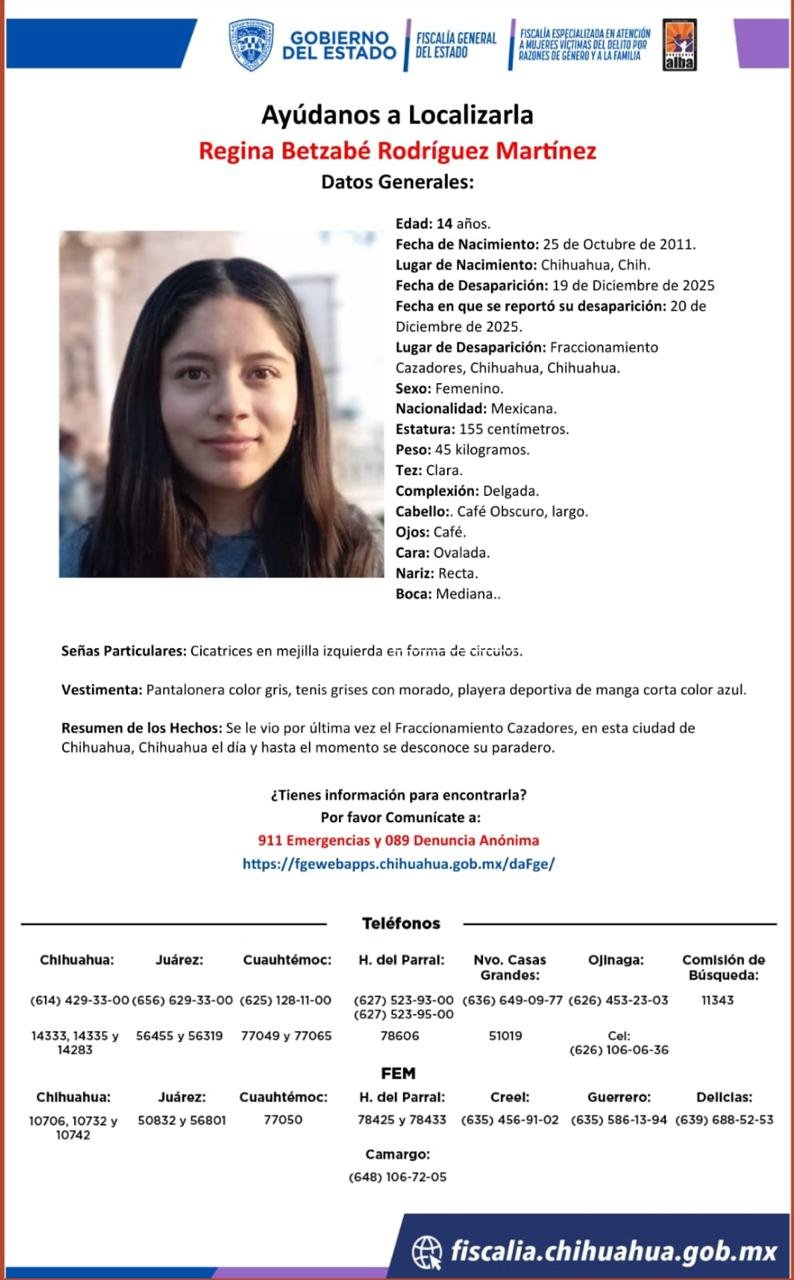 Piden ayuda para localizar a Regina Betzabé de 14 años 20 diciembre, 2025 No hay comentarios Leer más