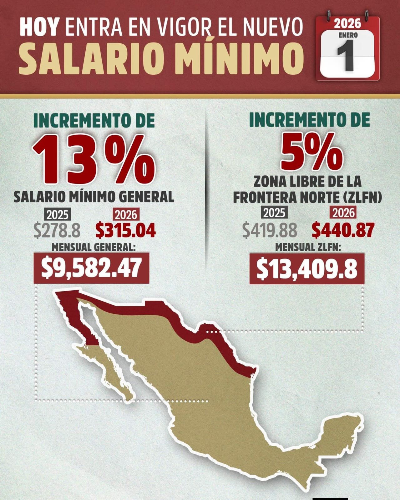 Entra en vigor el nuevo salario mínimo en México con aumentos de hasta 13% 1 enero, 2026 No hay comentarios Leer más