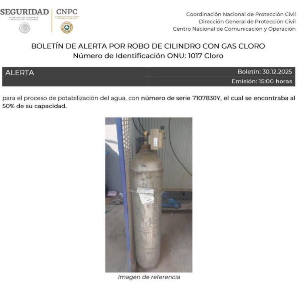 Alerta por robo de cilindro con gas cloro en Michoacán; advierten peligro en seis estados 31 diciembre, 2025 No hay comentarios Leer más